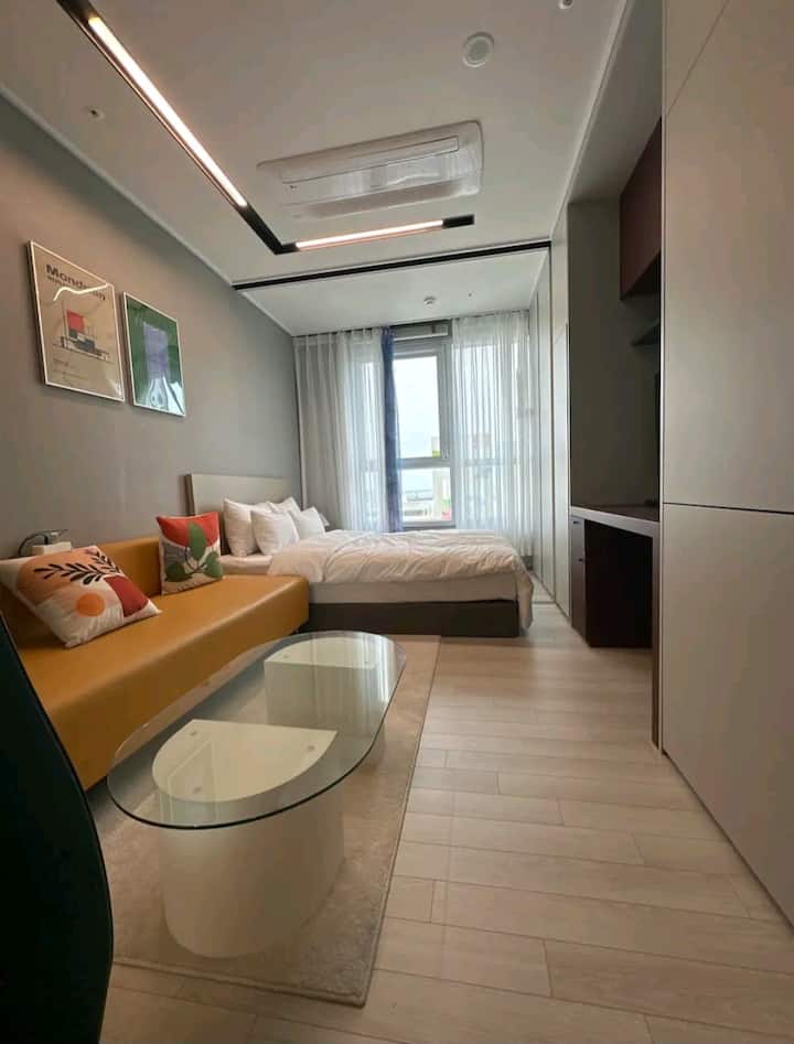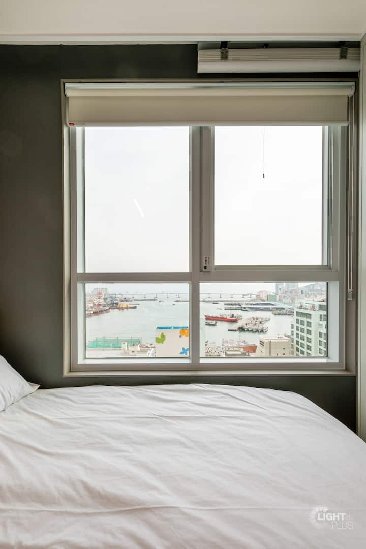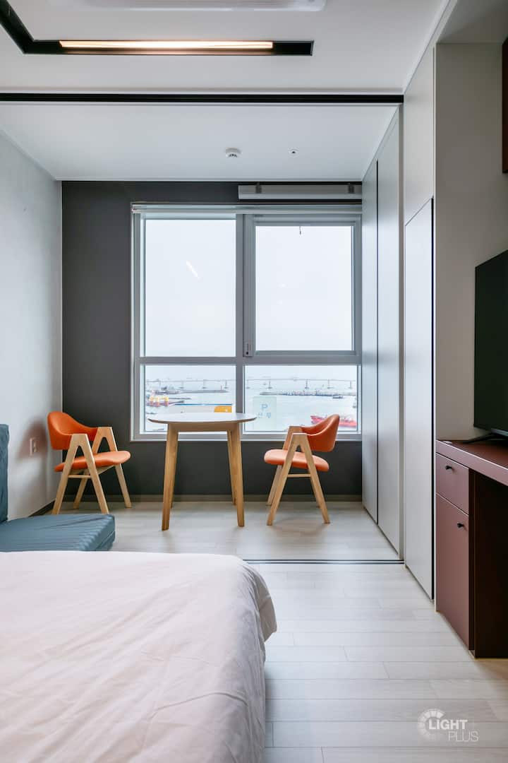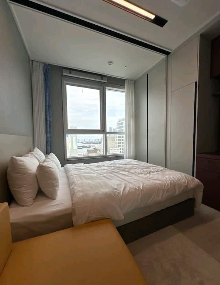 Vue sur l'océan l Hôtel moderne neuf à Nampo-dong : emplacement optimal et confort