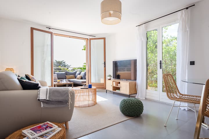 Belle vue mer, plage à pied 5 mn, confort, calme.