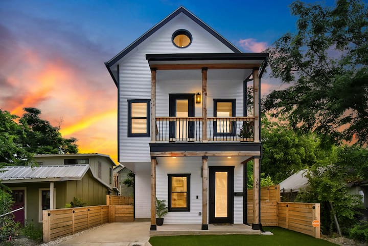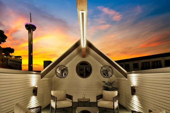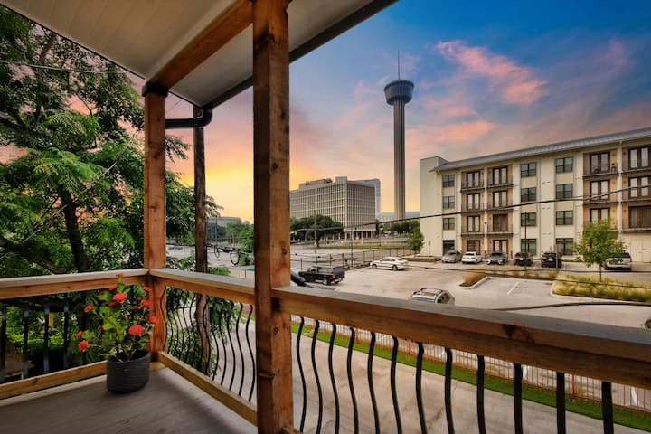 Mozzie 's Retreat est une nouvelle maison de 3 étages de 2 500 pieds carrés avec une terrasse SUR LE TOIT conçue avec expertise pour une vue imprenable et une proximité immédiate de tout ce que le centre-ville de San Antonio a à offrir. Accès à pied à la River Walk, à la Tour des Amériques et à Alamodome, et plus encore. Mozzie 's regorge de beaux détails, d'énormes téléviseurs, d'une cuisine chargée avec des ustensiles de cuisine Calphalon, de lits/oreillers/serviettes/papier toilette super confortables, de 2 bars à café, et géré par le propriétaire, un Superhôte avec plus de 500 commentaires ! ARRIVÉE/départ facile ! !