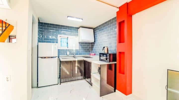 Pour la considération des autres voyageurs en raison du feu et de l'odeur, nous interdisons la cuisson du porc, du poisson, du cheonggukjang, etc. dans la pièce. Veuillez donc utiliser l'endroit extérieur désigné et l'espace barbecue.