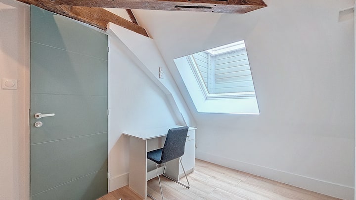 Chambre 3 : lit 180x200 qui est séparable en 90x200, bureau, armoire et une table de chevet