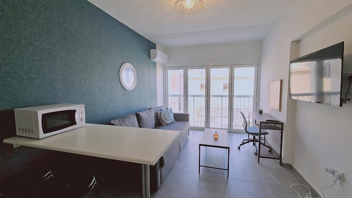 Découvrez le charme d'Ayia Napa dans notre confortable appartement d'une chambre avec une grande fenêtre unique qui crée une sensation de balcon lorsqu'il est ouvert. Situé près du centre-ville et à distance de marche de toutes les commodités et plages, il est parfait pour explorer les trésors locaux le jour et profiter de la vie nocturne. Avec un bureau dédié, il est également idéal pour les nomades numériques qui mélangent travail et vacances.