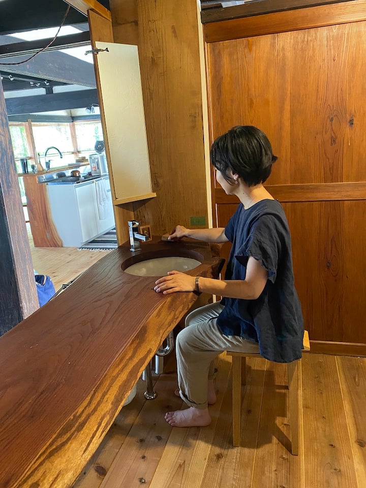 La cuisine est entièrement équipée et vous pouvez profiter de la cuisine avec des ingrédients locaux, cuisiner du riz dans un kamado et faire un petit barbecue avec un brasero. Vous pourrez également profiter de la fabrication de cadres photo en bois massif et de l'écriture avec un pinceau sur une planche en bois massif.