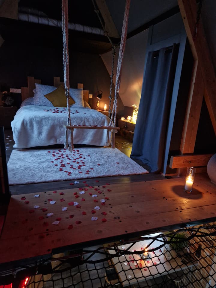 Chalet industriel avec filet et spa privatif