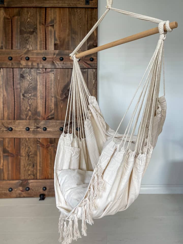 Bienvenue dans notre chambre bohème urbaine au cœur du pittoresque village d'Osprey à Pitt Meadows ! Cette charmante chambre à l'étage offre un mélange unique d'éléments urbains et naturels, offrant une retraite sereine pour les voyageurs. La salle de bain complète est juste à côté de votre chambre. C'est principalement à vous d'utiliser, mais si nous avons d'autres voyageurs qui séjournent chez nous pendant votre réservation, alors ce sera partagé (je vérifie souvent les toilettes tout au long de la journée si je suis à la maison pour maintenir la propreté). La chambre dispose d'un lit double avec un lit gigogne en dessous pour le deuxième voyageur. Votre chambre est directement en face des autres chambres à l'étage où l'hôte dort.