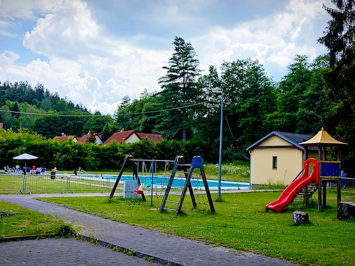 C'est l'un des rares logements de la région disposant d'une piscine.