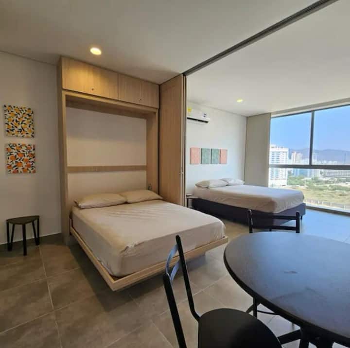 Spectaculaires aptes Près de la plage à 200 mètres à Playa Salguero, Rodadero Sur, avec 2 piscines, 4 jacuzzis , 2 Turcs, 2 Saunas, Salle de sport, aire de jeux, magasin, salle de jeux BillE, Ping Pong, jeux de société, Coworking avec WIFI climatisé, venez profiter de vos vacances ou voyages d'affaires et ayez une expérience merveilleuse dans ces hébergements de grand confort et de plaisir