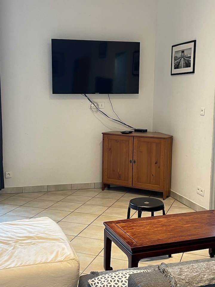 Une chambre avec wifi, bien aménagée pour travailler.