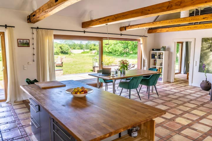 Maison de campagne moderne avec cheminée et sauna sur 7000 m²