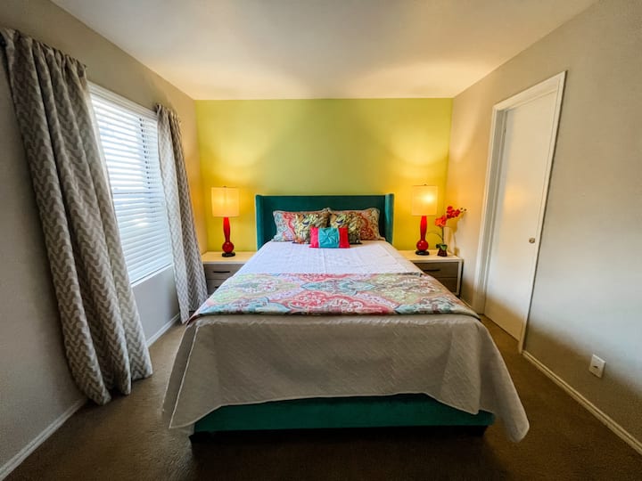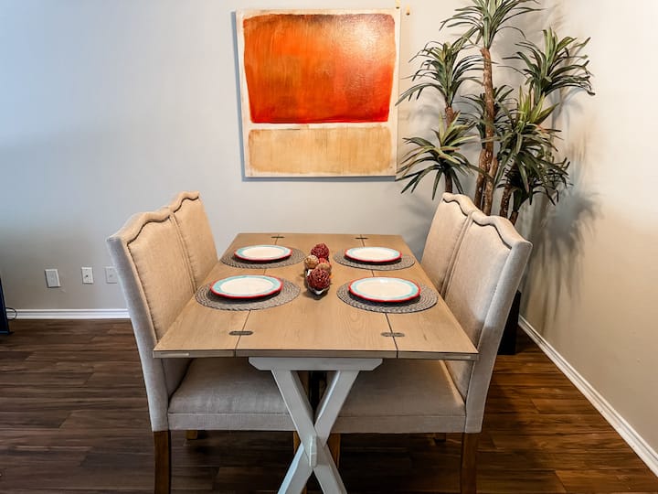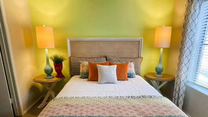 Bienvenue dans notre nouvel appartement d'inspiration tropicale de 2 chambres et 2 salles de bain, offrant un séjour coloré et relaxant pour 4 personnes maximum. Situé juste à côté de l'I-37, vous êtes à seulement 10 minutes en voiture des commerces et restaurants du centre-ville, 20 minutes de North Beach et 13 minutes de l'aéroport.