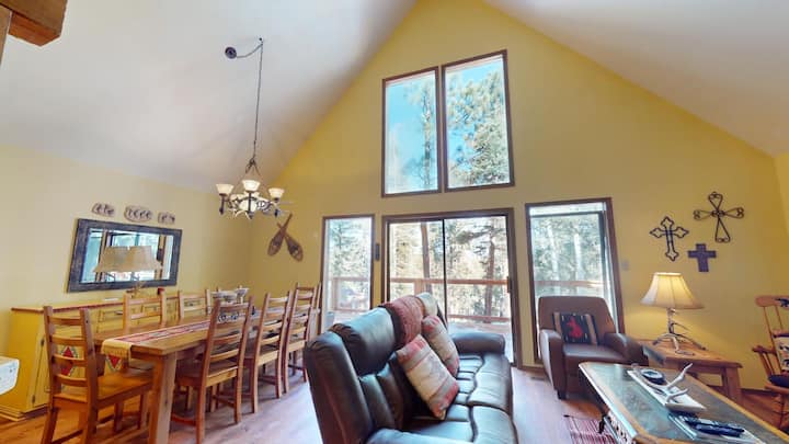 EMPLACEMENT : cette maison est à environ 4,0 miles ou à 8 minutes en voiture des activités de la montagne Angel Fire. Piscine intérieure intérieure partagée située au Angel Fire Country Club à environ 2,8 miles ou 6 minutes en voiture (des frais s'appliquent)