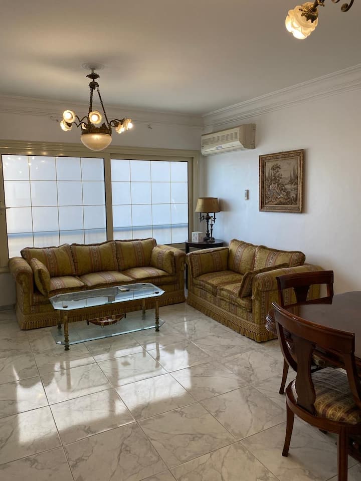 Installez-vous dans l'un des quartiers les plus prestigieux du Caire, dans cet appartement lumineux et spacieux de 2 chambres situé à Héliopolis et pouvant accueillir jusqu'à 4 personnes.