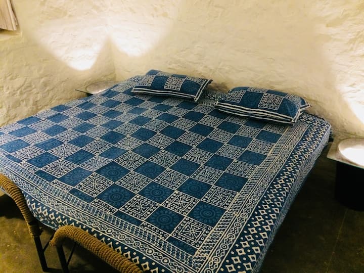 Old British House est situé sur Old Mussoorie Road (vers l'extrémité nord de la célèbre et chic Rajpur Road) à Dehradun. { Entrance } Promenez-vous à travers une porte rustique centenaire, sous la canopée de bougainvillaea rose profond, en regardant la maison britannique coloniale de style emblématique avec un porche, des toits inclinés et une cheminée sur le dessus, de longs couloirs avec de larges piliers sur le sol, un grand espace ouvert recouvert de pierres de rivière devant et un grand jardin sur le côté. { Rooms } Outhouse - Il s'agit de 5 logements indépendants au rez-de-chaussée face au jardin. Chaque cabane est une petite mais complète unité avec un lit double, une salle de bain attenante, une étagère de garde-robe et un bureau. L'entrée dans la pièce se fait par une double porte classique avec des fenêtres construites équipées de treillis métallique. Les fenêtres fournissent une lumière de jour abondante et une ventilation croisée dans la chambre. Vous entrez dans le logement et à gauche se trouve la salle de bain attenante avec des accessoires modernes et une douche (l'eau chaude est disponible sur demande). Sur la droite se trouve une armoire ouverte avec plusieurs étagères. Traversez le petit couloir entre les toilettes et l'armoire dans la chambre. Ces chambres ont de vieux murs en pierre qui font plus d'un pied de large et offrent une isolation naturelle. Le est en pente avec un ventilateur de plafond. Les chambres sont décorées simplement pour donner un aspect confortable du chalet. Le lit double est, deux lits simples joints ensemble avec un matelas en coton et des draps frais de bonne qualité sur le dessus. Toutes les maisons d'Outhouses disposent d'un salon extérieur dans le couloir face au jardin. { Cuisine } Tous les invités ont accès à la cuisine, Il est équipé d'une cuisinière, broyeur-mélangeur, réfrigérateur, batterie de cuisine, vaisselle et eau filtrée. Tout le monde est tenu de nettoyer sa vaisselle usagée instantanément après utilisation. L'épicerie et d'autres services publics sont accessibles à pied au marché principal de Rajpur. Les clients qui choisissent d'utiliser la cuisine pendant plus d'une semaine seront nominalement facturés pour le combustible de cuisson. Les clients peuvent commander des repas ( végétariens et non végétariens), du thé, des collations et des shakes parmi les options disponibles en interne. Tous les repas sont préparés frais, nous demandons donc à nos clients d'informer l'hôte interne au moins 2 heures avant l'heure habituelle des repas. Les en-cas et boissons sont plus rapides. Pour un service sans tracas, nous encourageons le libre-service. Certaines recettes utilisées sont conservées pendant 8 générations dans la famille Sehgal. Cependant, nous sommes ouverts pour personnaliser la préparation des aliments en fonction des exigences des voyageurs. Les voyageurs en provenance de pays européens et occidentaux peuvent opter pour des plats végétaliens et sans épices. Nous demandons et encourageons tous nos clients à utiliser la table à manger et à éviter de manger dans les chambres. D'après les commentaires des voyageurs précédents, les aliments et boissons en interne sont très bien notés. { Parking } Traversez directement la porte principale sur les pierres de la rivière (appelée localement Bajri ) et garez-vous facilement sans bloquer d'autres voitures. { Garden } Le jardin est réparti sur la droite depuis le portail principal. Il y a des sentiers en pierre de rivière bien planifiés à parcourir. Le jardin présente une variété d'arbres fruitiers de l'Himalaya et des fleurs de saison le long des pelouses.