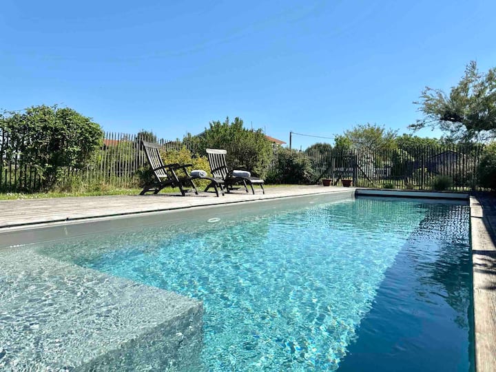 Les éléments suivants sont parfaits pour vos voyages en été : lits de bronzage, piscine, espace repas en plein air et espace barbecue.