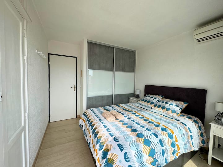 Lumineux T2 climatisé en centre ville avec parking