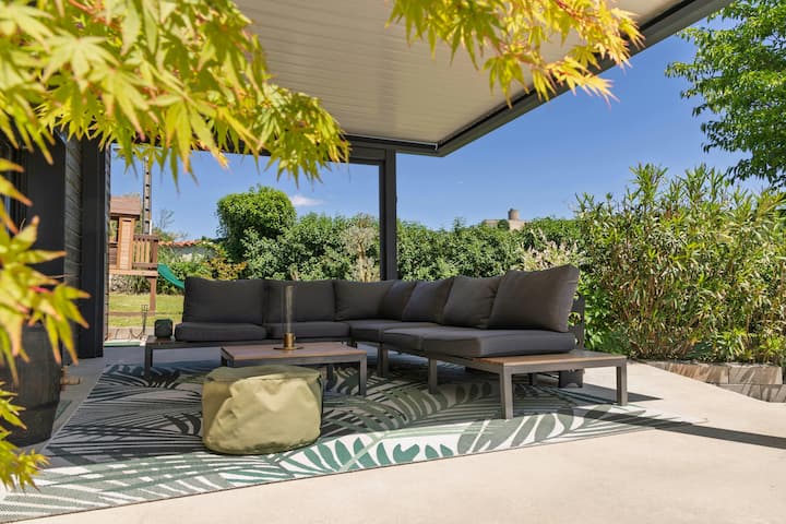• Canapé d’extérieur sous la pergola bioclimatique