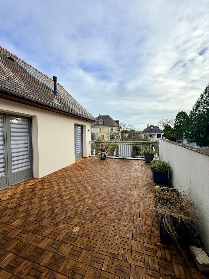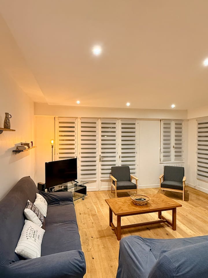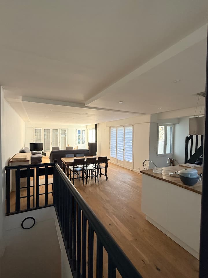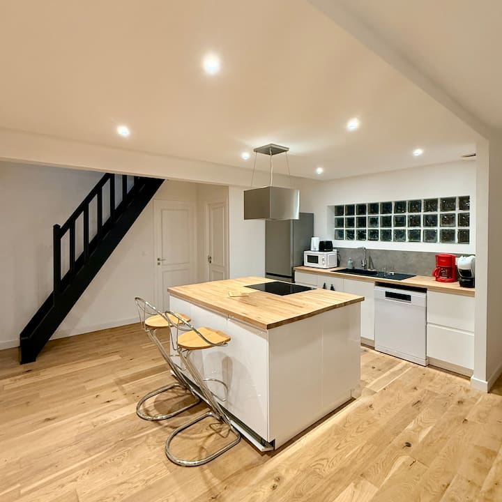 Un appartement duplex contemporain & très fonctionnel a proximité du centre-bourg (5mn à pieds de la boulangerie) et une place très dynamique ou chaque soir il y a un food-truck.