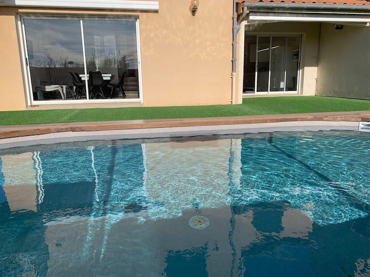 Villa 200m plage, piscine chauffée sécurisée, spa