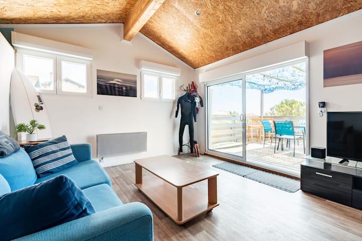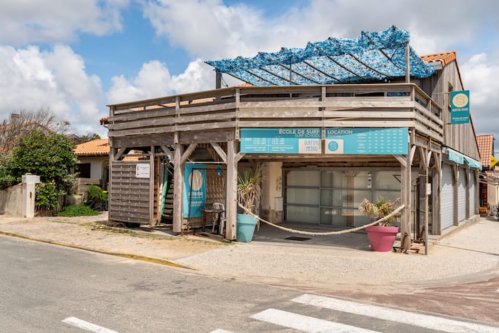Nous sommes une Ecole de Surf basée à Hourtin-Plage, Gironde, France et proposons à la location saisonnière un logement situé juste au dessus de l'école.