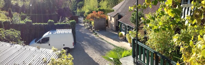 l'accès direct à la rivière permet des ballades en canoés à disposition