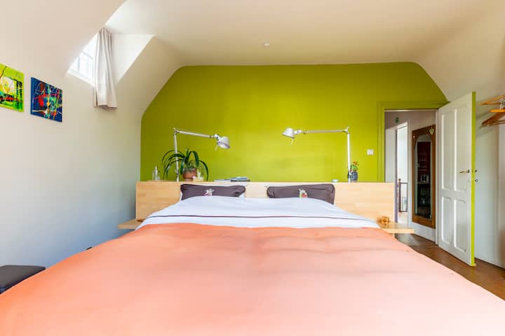 La gestion d'un B&B est limitée depuis longtemps aux conversations à la table des visites de restaurants. Maintenant que tous nos enfants sont sortis, c'est l'heure de commencer. Nous habitons dans une belle maison qui est trop grande pour 2 personnes. C'est agréable de montrer aux autres une belle maison et un beau jardin dans l'une des plus belles villes de Belgique...