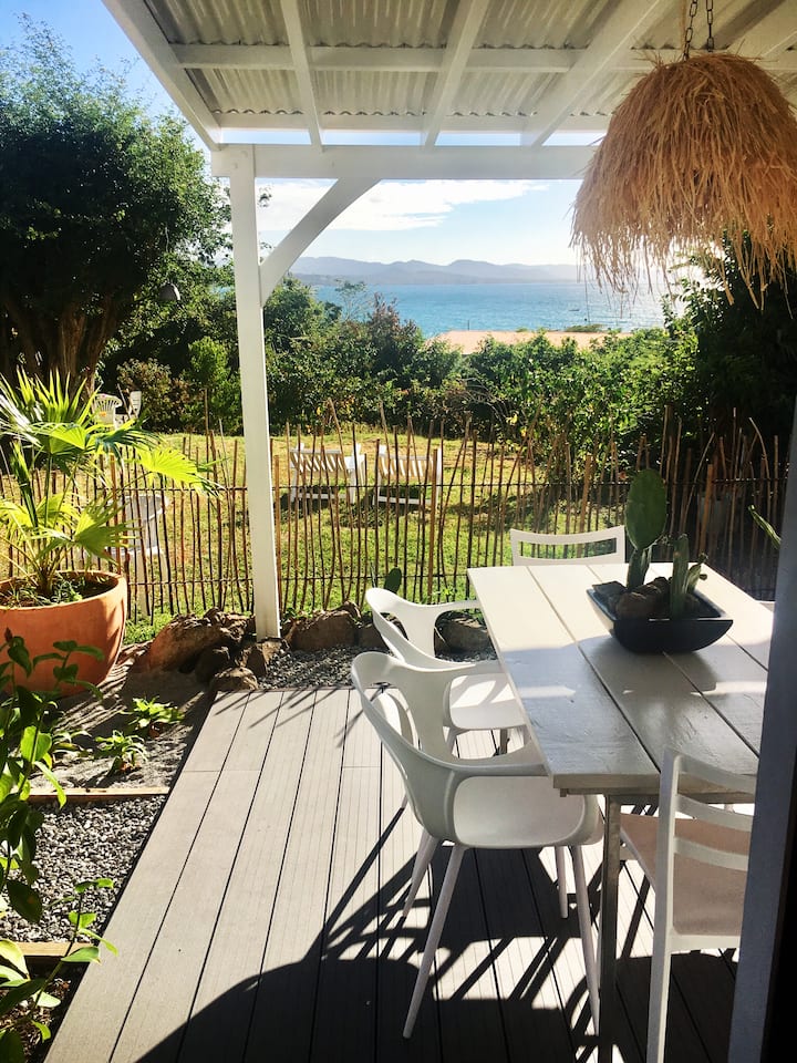 Vue sur : plage et jardin