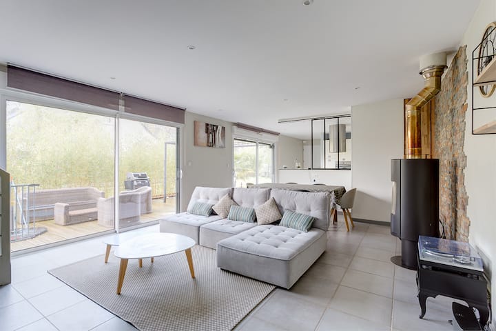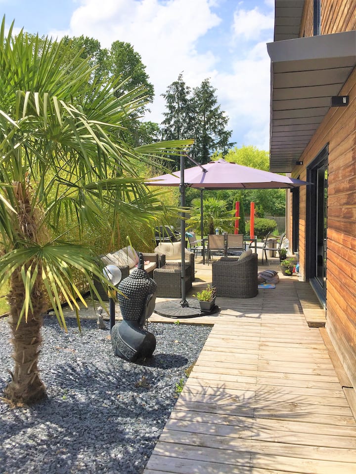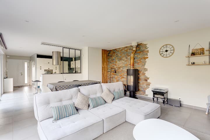 Nous vous accueillons dans cette grande maison, confortable et lumineuse, entourée d’un jardin avec piscine, et de 2 terrasses. Située au cœur de la vallée de l’Indre, cette maison récente dispose de tous les équipements nécessaires pour votre confort. Vous apprécierez cette grande maison pour son confort, sa luminosité, ses équipements de qualité, sa décoration, et sa proximité des châteaux de la Loire (à 10 minutes des plus proches châteaux). Idéale pour un séjour en famille ou entre amis.