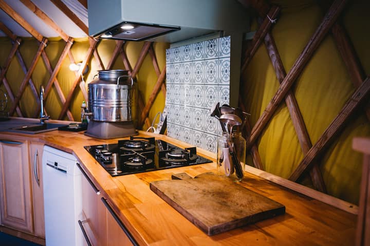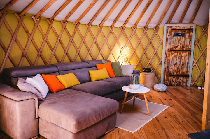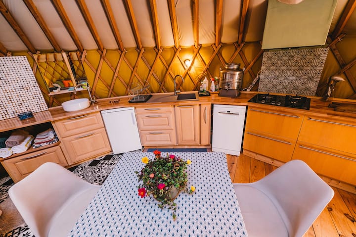Yourte contemporaine en pleine forêt