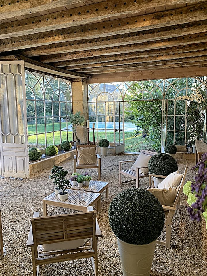 Détendez-vous autour de la piscine (barrière d'accès et volet de sécurité) ou découvrez l’orangerie d’époque, un véritable joyau architectural qui ajoute au charme de la propriété.