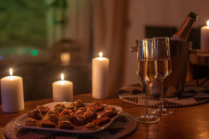 Côté pratique, la cuisine équipée vous offre tout le nécessaire pour savourer un dîner ou un petit-déjeuner en amoureux : micro-ondes, plaques à induction, four, bouilloire, cafetière, réfrigérateur, vaisselle complète.