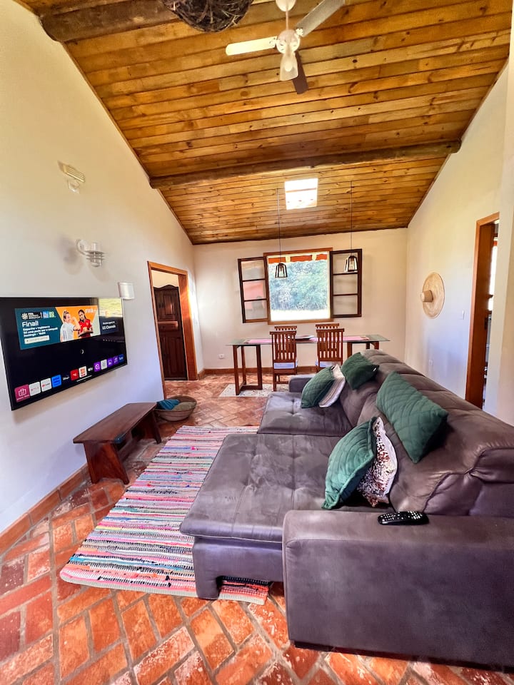 Si vous rêvez de vous déconnecter de l'agitation de la ville et de vous connecter avec la nature, cette petite maison est la destination idéale. Situé dans les superbes montagnes de Cunha, à seulement 9 km du centre (avec un chemin de terre la plupart du temps), il offre toute la paix et le confort que vous méritez. Entouré par le chant des oiseaux, des coqs, des bœufs, des canards, des oies et le doux son des grenouilles, vous découvrirez ici une atmosphère rurale authentique, sans renoncer à toutes les commodités d'une maison haut de gamme. 🌿🐓