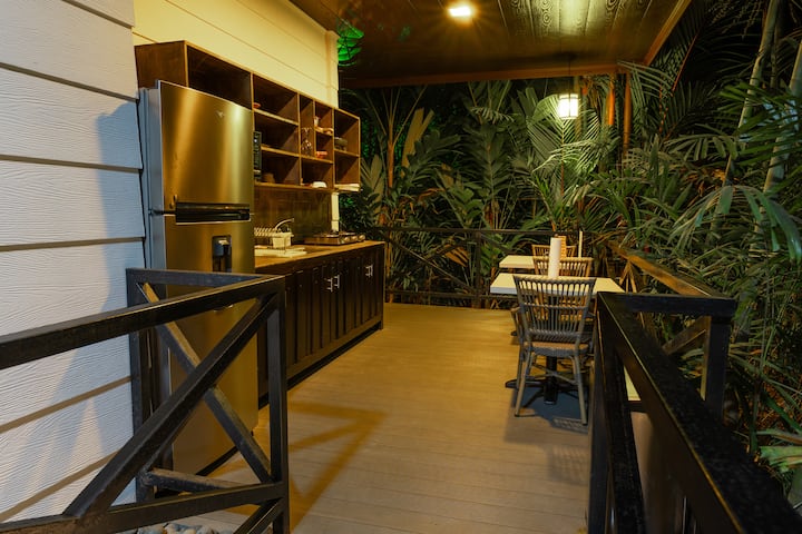 Ma femme et moi avons construit cette maison lorsque je travaillais dans la région de La Fortuna. Nous vivons et travaillons à San Jose maintenant, alors nous avons décidé de louer la maison. Il était construit avec amour, et la propriété dispose d'une véritable énergie agréable autour. Nous pensons que la rivière ajoute du calme, de la bonne énergie et une ambiance propice au repos. C'est un endroit pluvieux et ensoleillé, alors profitez de la nature et détendez-vous.