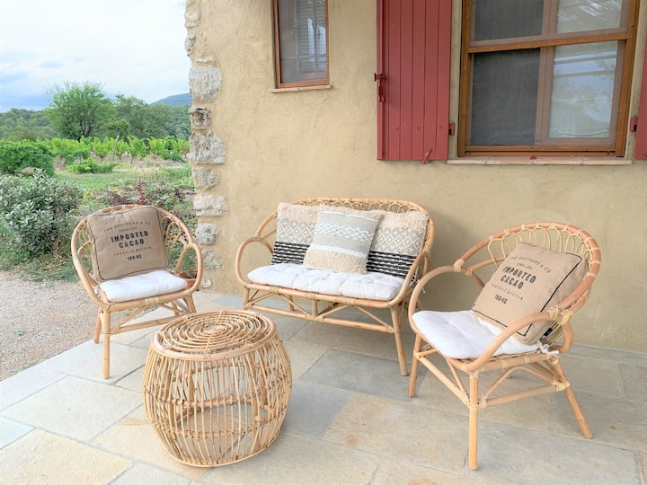 Mon mari Christian et moi avons décidé d'acheter cette exploitation à l'abandon afin de lui redonner vie et lui permettre de retrouver sa splendeur d'avant. Nous avons commencé à rénover l'habitation principale , deux gîtes, une ancienne bergerie devenue un atelier et un terrain de pétanques a été créé. Les oliviers ont été taillés et de nombreux arbres ont été plantés. Nous sommes également devenus refuge LPO et il vous sera possible d'observer de nombreuses variétés d'oiseaux sur l'exploitation.