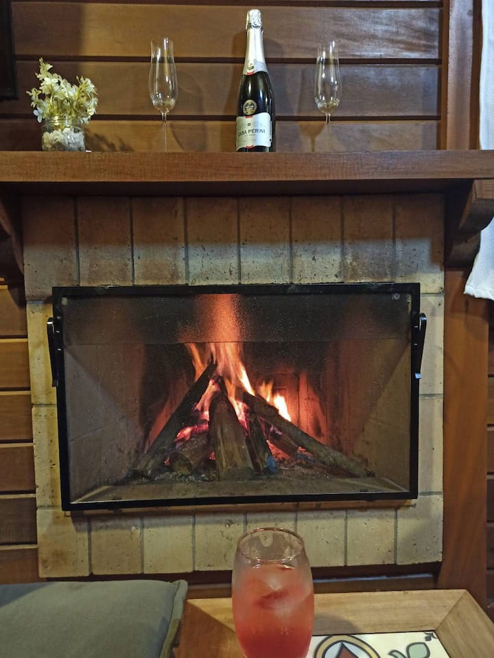 Chalet avec cheminée forêt et lac région de Pedra Azul