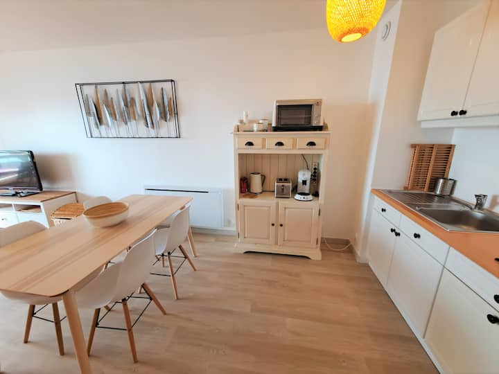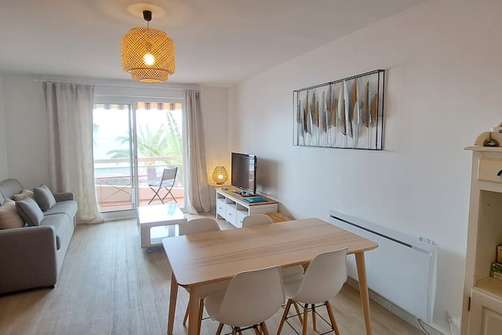 Beau studio face à la mer, terrasse, parking
