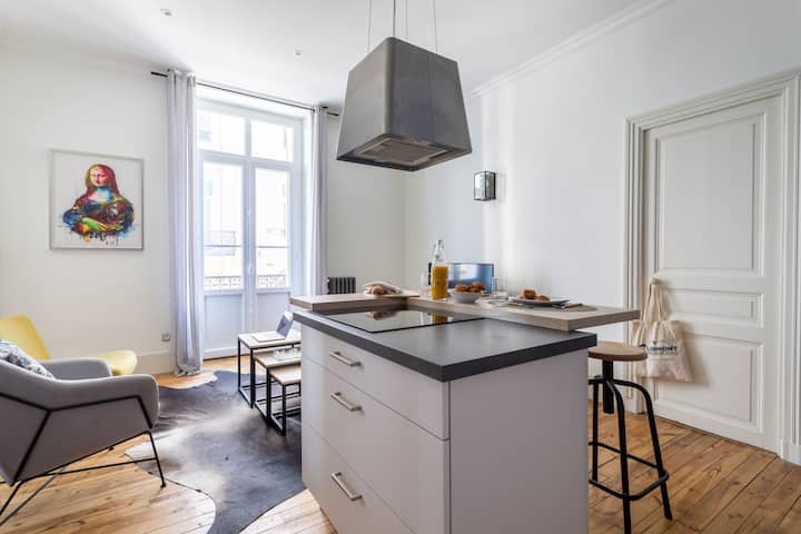 Vous cherchez un nid douillet pour vous ressourcer ? Découvrez "Le Louvre Auvergnat", un logement chic à 2 minutes à pied des thermes de Royat. Rénové en 2020, cet appartement de 45 m² combine confort moderne et éléments artistiques, comme une Joconde revisitée. Profitez d'une cuisine fonctionnelle, d'un salon lumineux avec des équipements haut de gamme pour des soirées détente, et d'une chambre zen avec un lit queen size. La grande cabine de douche offre une expérience digne d’un spa privatif.
