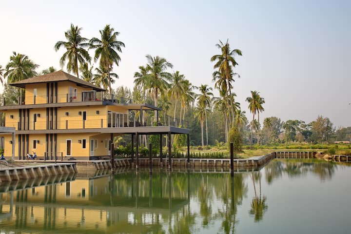 Shambhala Boat House sert, comme son nom l'indique, de hangar à bateaux pour le Shambhala Beach Bar. Le rez-de-chaussée est un parking couvert pour bateaux et une salle de sport. Les 2 derniers étages sont un appartement penthouse moderne de 2 chambres situé à quelques pas de l'une des plus longues et des plus belles plages de sable de Koh Chang. Donc, vous avez essentiellement toute la maison pour vous. La Shambhala Boat House est juste sur/au-dessus du canal de bateau qui peut être utilisé pour la baignade ou le kayak/SUP et bien sûr la navigation de sorte qu'une excursion en bateau peut commencer juste devant votre porte.
