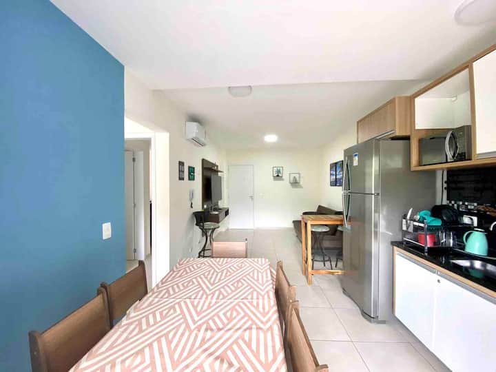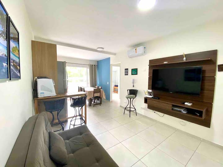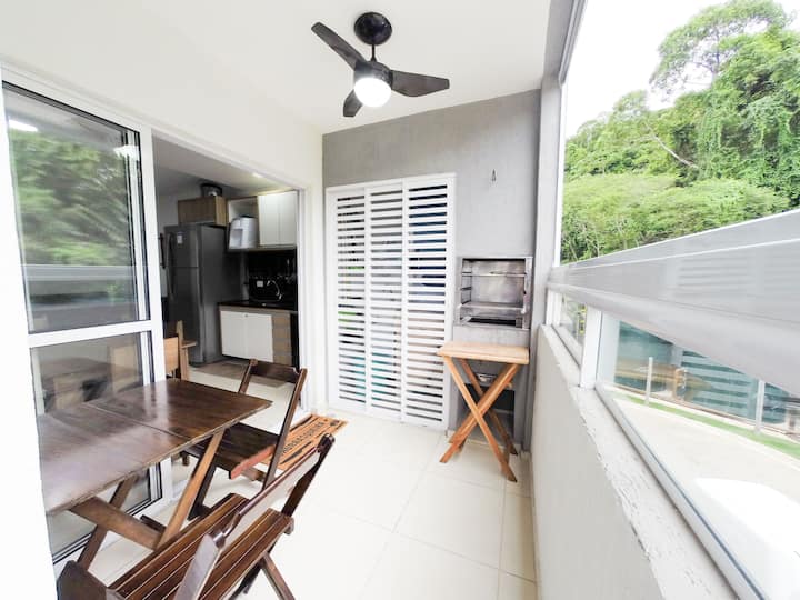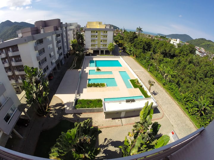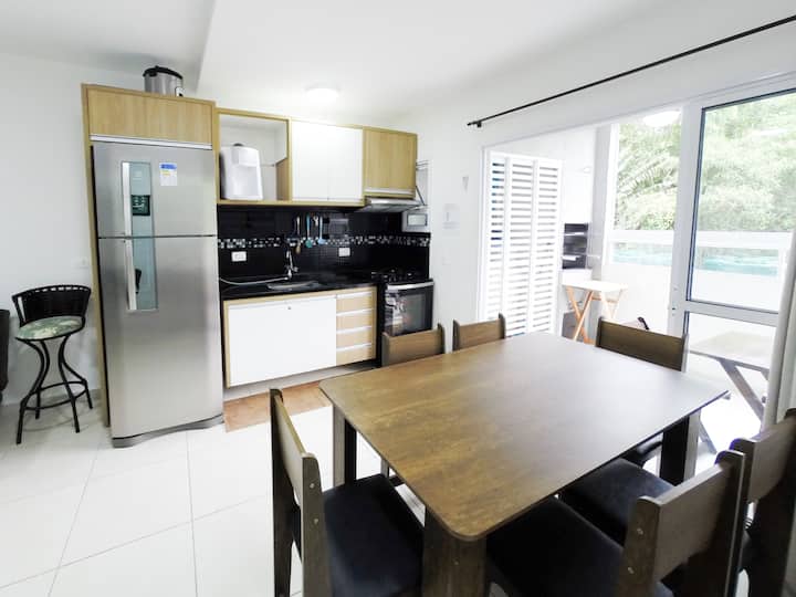 Nous sommes à deux pâtés de maisons de la plage de Perequê-Açu, autour de nous avons une boulangerie, un marché, des restaurants - le tout sans avoir à sortir la voiture du garage.