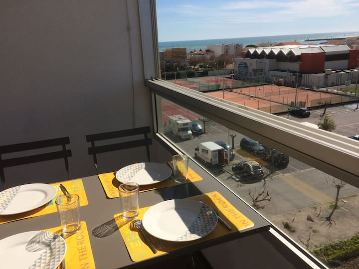 F2 plage 100 m/place parking/vue mer latérale/clim