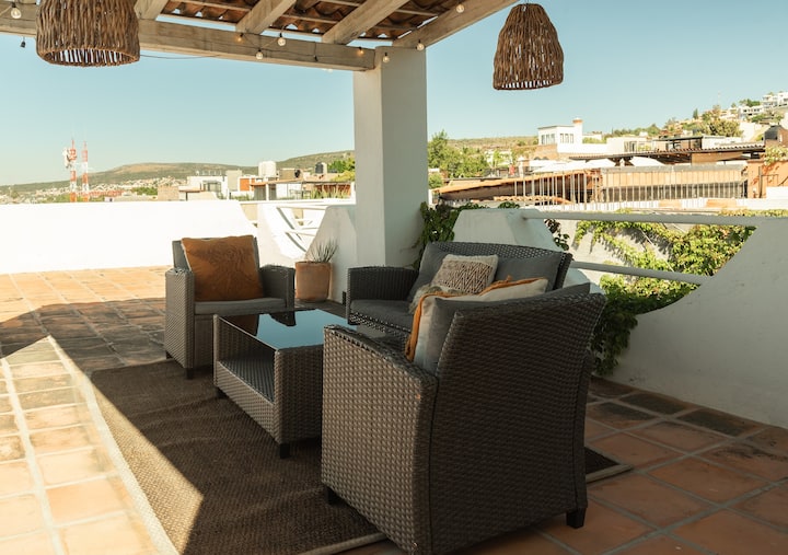 Casa Terraplén, à San Miguel de allende, est un espace confortable parfait pour s'évader et profiter du beau village. Avec une architecture coloniale et une décoration mexicaine, des espaces très spacieux et en plein air, à partager en famille ou entre amis. Nous voulons que vous vous sentiez comme chez vous et que vous profitiez de chaque moment de votre visite.