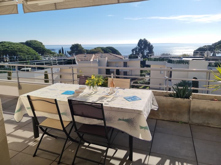 Apt Magnifique Vue Mer, 80m Plage à Pied, Piscine
