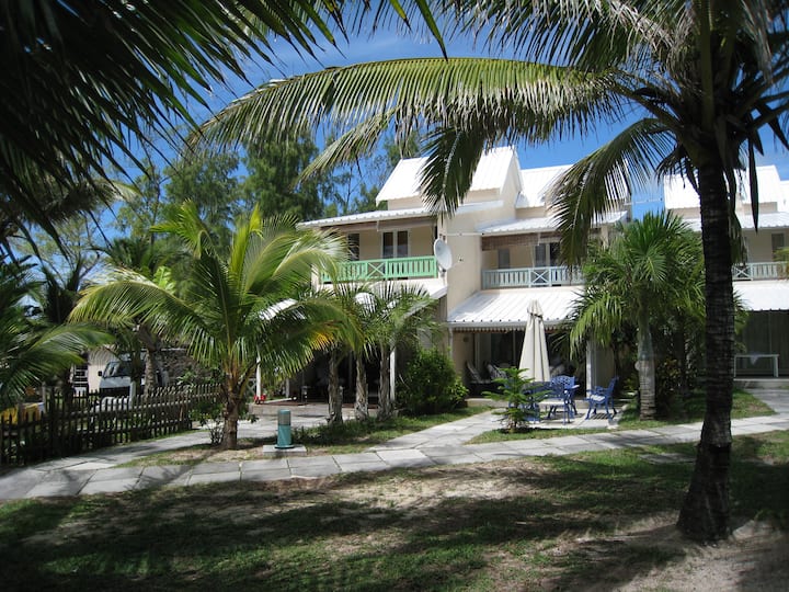 Notre maison de plage peut accueillir 8 personnes dans 4 chambres doubles ( un rez-de-chaussée ) plus un lit bébé. JUSTE sur une belle et longue étendue de sable blanc et sûre, dans la région la plus convoitée de l'île Maurice, à proximité des restaurants et des bars. Possibilité de cuisiner à la maison, nounou, thérapeute et chauffeur le tout à des tarifs locaux bas. Jardin privé fermé en bord de mer, deux espaces repas extérieurs, parking privé en front de mer sécurisé en bas niveau deux étages développement. L'un des 26 logements privés partageant une grande piscine et son jardin.