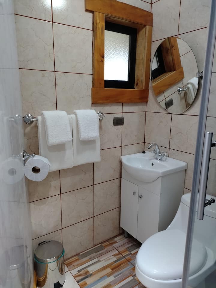 Tünquelen Achao, chambre avec salle de bain privée.