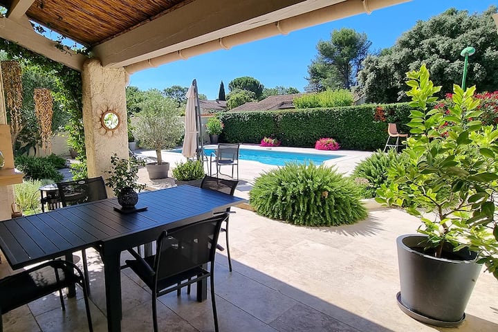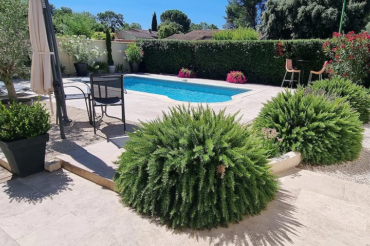 Les éléments suivants sont parfaits pour vos voyages en été : piscine, espace repas en plein air, espace barbecue et salon d'extérieur.