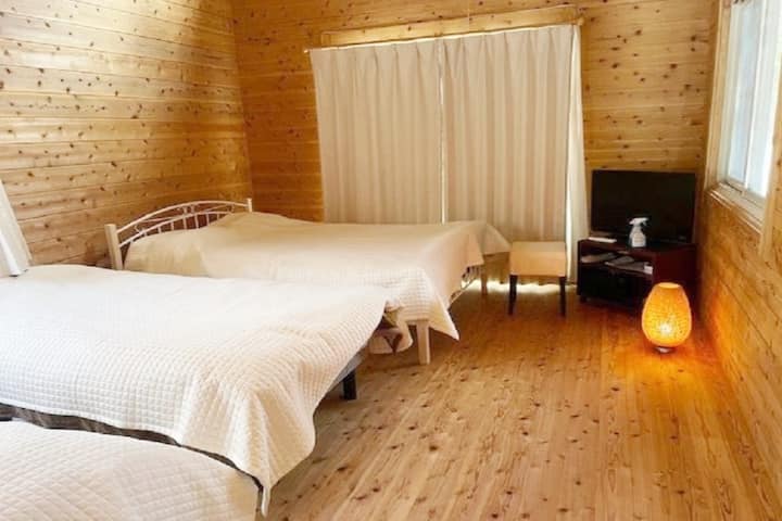 ご自身で設営いただくキャンプサイトはもちろんのこと、アウトドアに少し不安がある方でも安心のログハウスのご用意もございます!