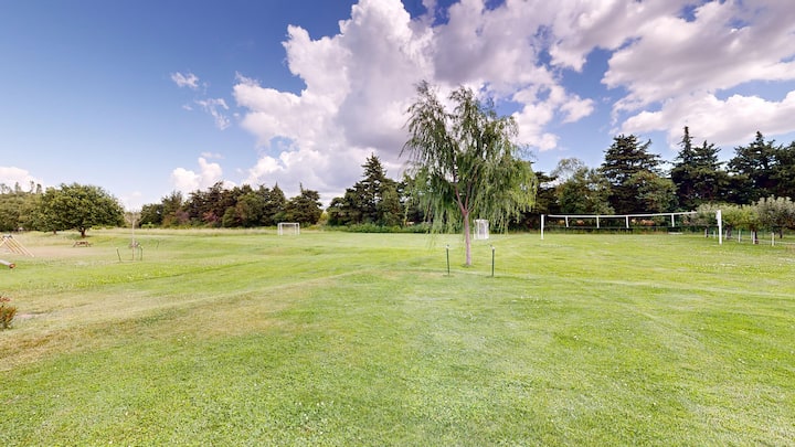 les équipements extérieurs : robots tondeuse en action de 21h à 8h, cages de football, filet de volley, jeux de société, boules de pétanque, table ping-pong, mobilier de jardin, …,