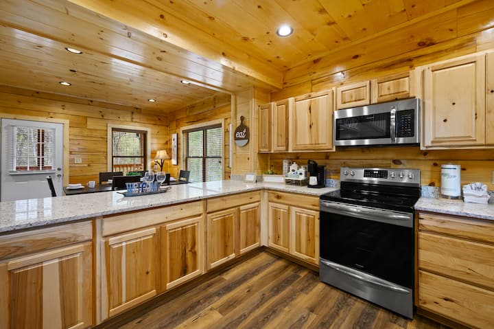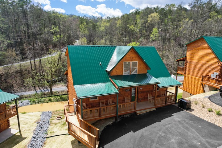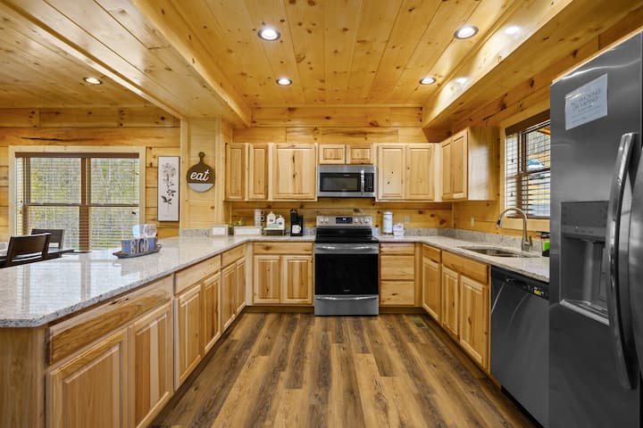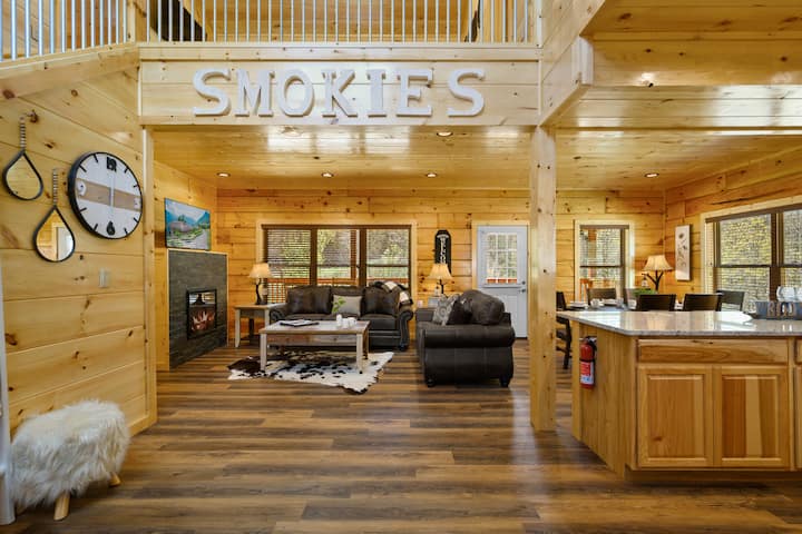 Faites de la randonnée dans le parc national, visitez Dollywood, allez skier à Gatlinburg ou détendez-vous dans le jacuzzi privé sur le balcon. Complet avec une salle de cinéma, une salle de jeux, une table de billard, un air hockey, une salle familiale avec cheminée et une cuisine entièrement approvisionnée. De plus, avec 2 niveaux ayant des balcons pleine longueur pour profiter de la vue et de l'air de la montagne, vous ne voudrez plus jamais partir.