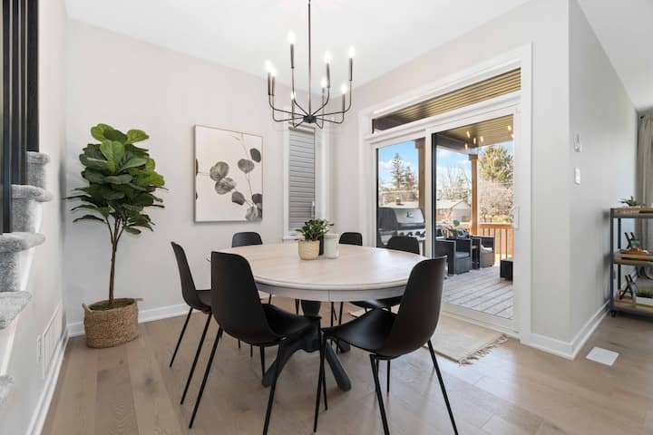 Maison joyeuse de 4 chambres, avec patio couvert.