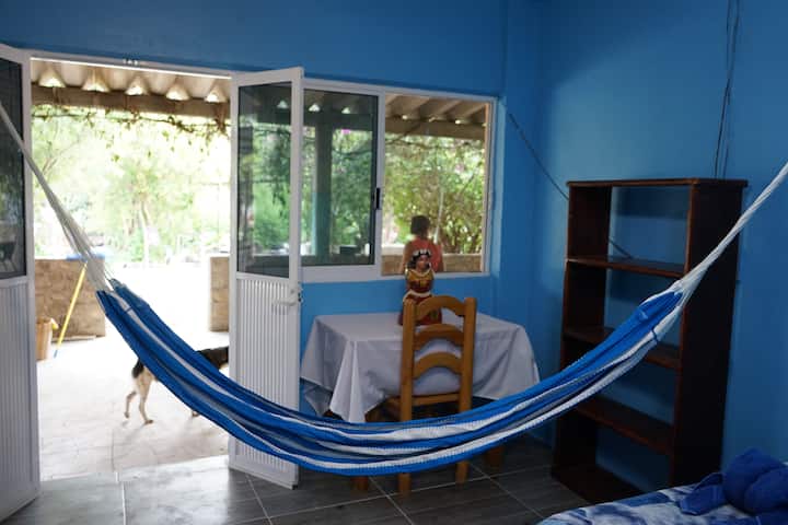 Vous séjournerez dans nos chambres les plus récentes spécialement conditionnées pour accueillir des voyageurs Airbnb. La chambre dispose de grandes fenêtres, d'un ventilateur de plafond et de moustiquaires. Nous avons également mis un joli hamac là-dedans. Nous avons une grande maison avec un grand patio où nous gardons du bétail (chèvres, moutons, chevaux, vaches et poulets en plein air), vous pouvez les aider à les nourrir ;-) nous sommes juste heureux de partager notre culture et de rencontrer des gens du monde entier, vous aurez la chance de vivre la culture zapotec, d'écouter notre langue maternelle, d'aller faire du shopping au marché fermier local et de rejoindre de nombreux festivals et traditions du village.