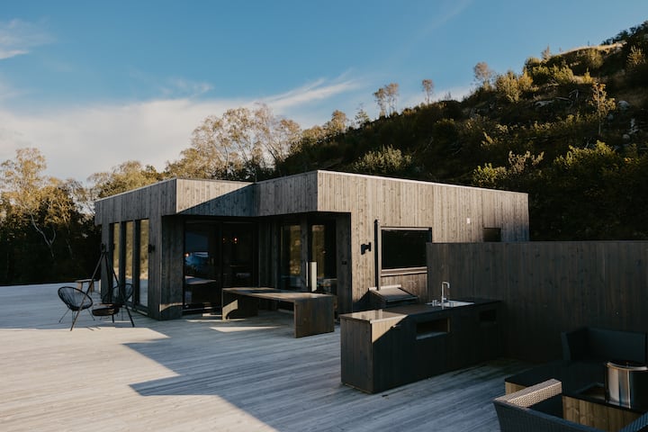 Chalet tout neuf en bord de mer avec une grande terrasse
